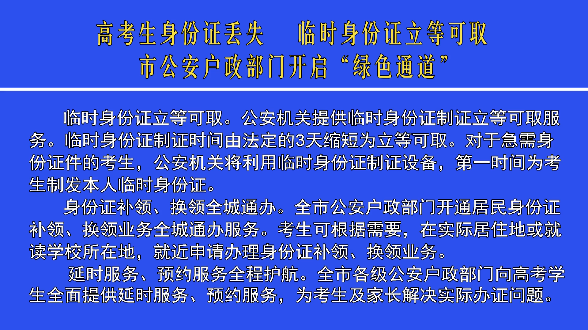 高考生身份證丟失 臨時(shí)身份證立等可取 市公安戶政部門開啟“綠...